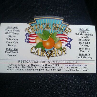 . Horaires douverture contacts et 20 avis pour Truck Shop à 739 N Batavia St. TRUCK SHOP CAR SHOP. 739 N Batavia St Orange CA 92868.